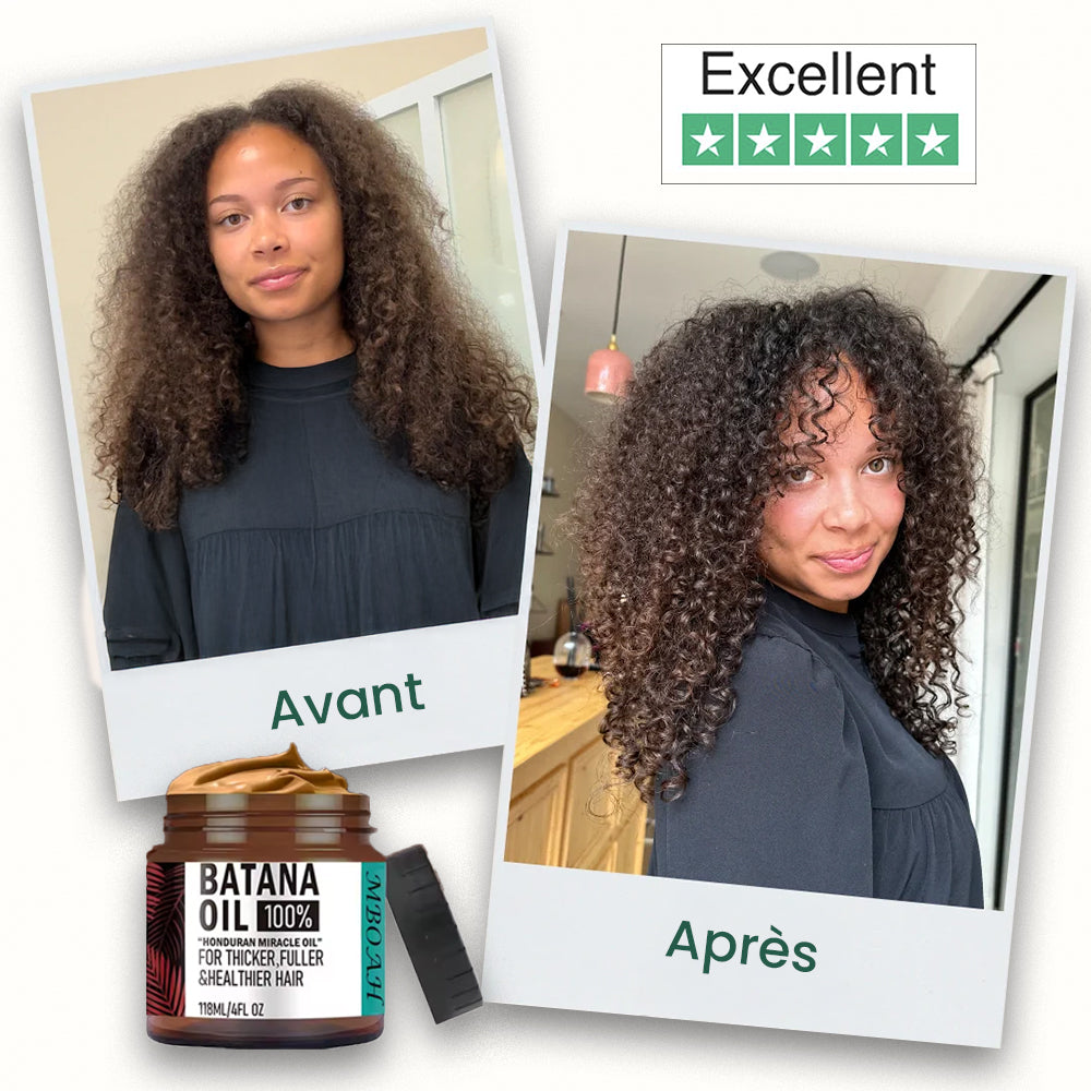 La Batana nourrit le cuir chevelu et limite la casse, ce qui aide à garder plus de longueur et donner un effet de densité. Les résultats varient selon chacun, mais beaucoup voient des cheveux plus forts et plus pleins au fil des semaines.